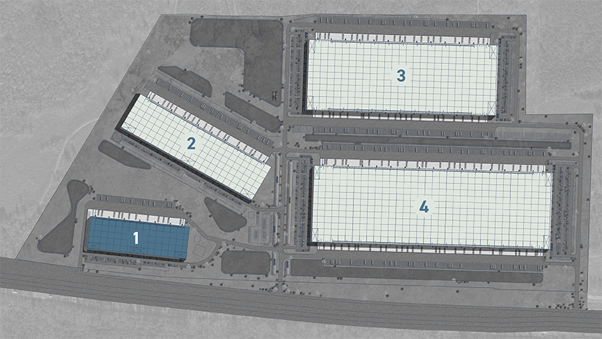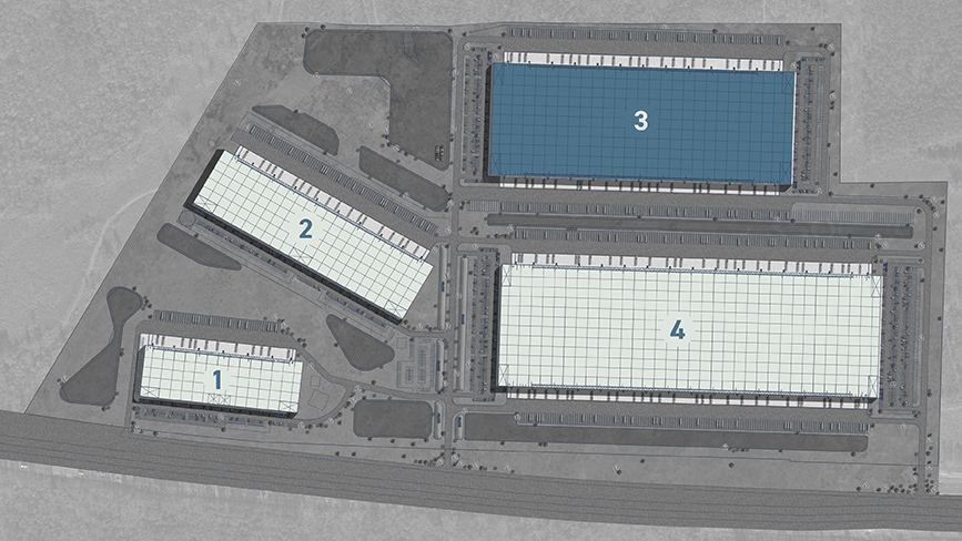 | Truck Court Depth | 185’ (60’ Dock Apron, 70’ Drive Lane and 55’ Trailer Parking |